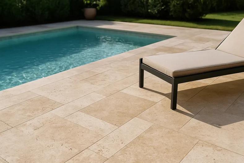 Pourquoi le travertin fait la différence autour d’une piscine haut de gamme