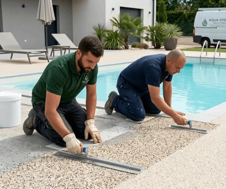 Le coût global dépend de plusieurs paramètres : choix du kit complet, type de granulat de marbre, surface à couvrir et complexité de la pose. En moyenne, le prix au mètre carré oscille entre 40 et 90 €, fourniture et pose comprises. Pour un projet personnalisé intégrant des motifs ou des zones spécifiques (comme une plage de piscine), l’investissement peut grimper légèrement.